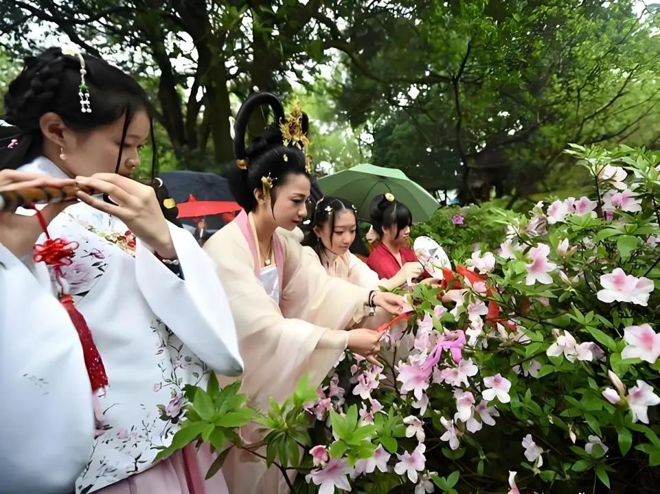 餞送花神:古人認(rèn)為,芒種過(guò)后,百花凋零,花神退位。民間會(huì)舉行“送花神”的儀式,表達(dá)對(duì)花神的感激與惜別。女孩們用絲綢、彩線系于花枝,或制作轎馬幡旗,為花神餞行,場(chǎng)面浪漫而富有想象力。
